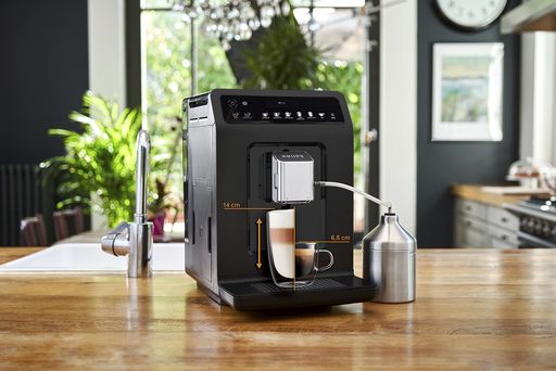 - Выбор напитка. Выберите нужный рецепт (эспрессо, лунго, американо, капучино и т.д.) на панели управления. Для некоторых моделей перед приготовлением кофейного напитка вы можете задать его крепость - количество кофе для приготовления одной чашки, а также объем напитка. В кофемашине Evidence Plus EA894810 есть возможность добавить дополнительную порцию эспрессо к выбранному напитку.