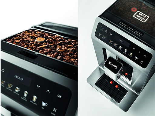 В большинстве кофемашин используется жерновая кофемолка, которая может иметь различную форму и изготавливаться из металла или керамики. Модели Krups оснащены высокоскоростной конической кофемолкой с металлическими жерновами. Такие жернова отличаются повышенной надёжностью по сравнению с керамическими и способны измельчать даже самые твердые сорта кофе. Конусообразная конструкция обеспечивает равномерный помол, что играет ключевую роль в создании насыщенного и ароматного напитка.