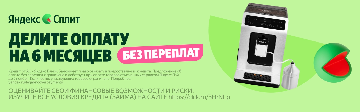 До 2 ноября можете воспользоваться Сплитом 0-0-6. Разделите оплату покупки на 6 месяцев без первого взноса и переплат. Акция действует при сумме заказа до 50 000 рублей.