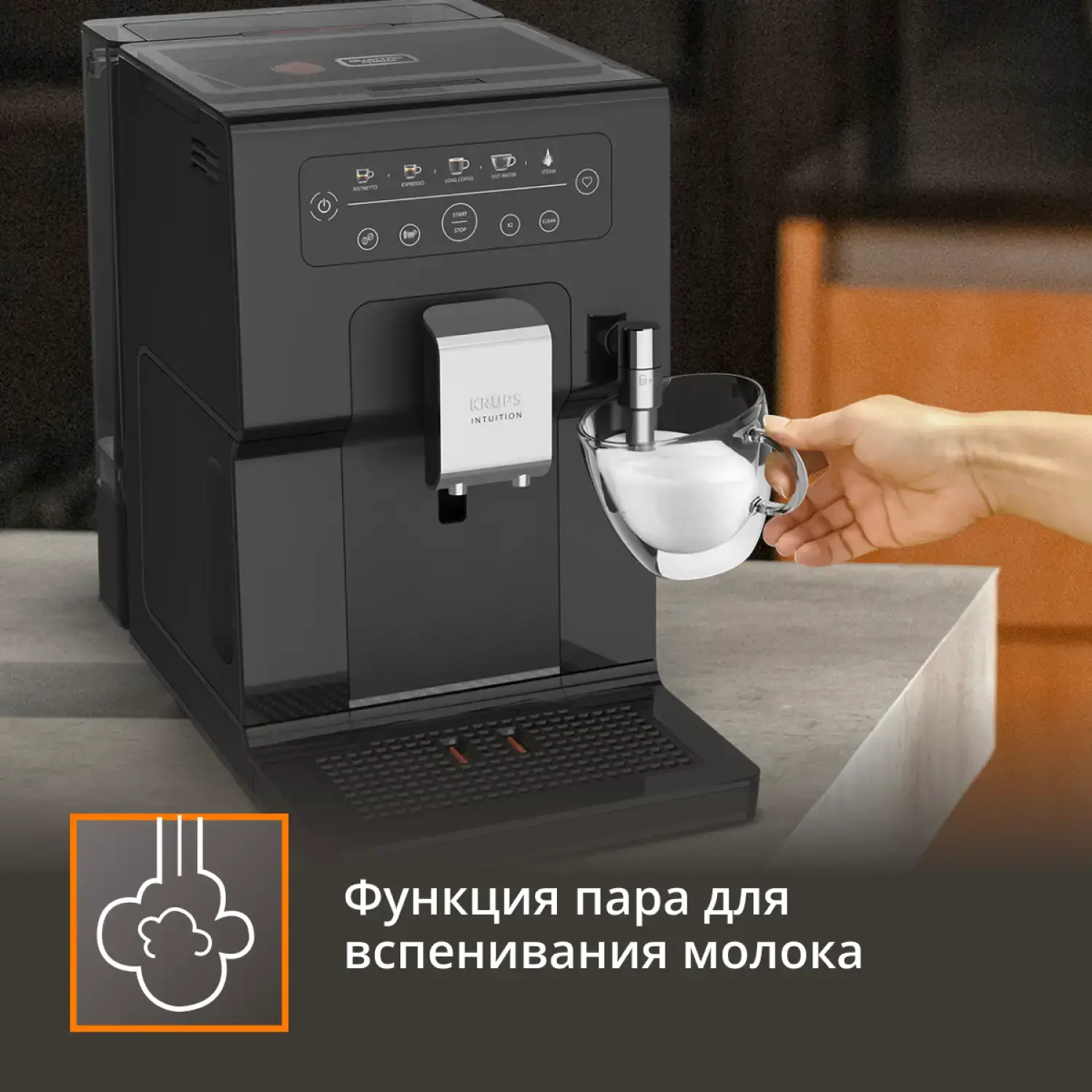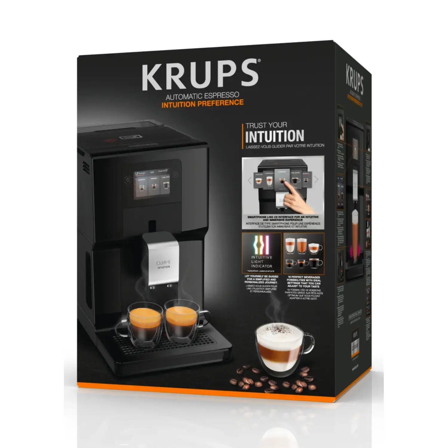 Автоматическая KRUPS Intuition Preference EA873810 в черном цвете — это современная кофемашина с автоматическим приготовлением капучино, оснащенная сенсорным управлением для максимально удобного использования. Мощность устройства составляет 1450 Вт, что обеспечивает быстрое приготовление напитков. Контейнер вмещает до 9 кофейных порций. Доступна ручная регулировка степени помола (5 режимов), что позволяет подстраивать вкус кофе под индивидуальные предпочтения. Среди полезных функций: умные световые индикаторы облегчают ежедневное использование кофемашины krups: красный цвет подсказывает, когда необходимо наполнить или очистить контейнеры, а настраиваемые цветовые индикаторы обеспечивают быструю и интуитивную навигацию. Производство — Франция.
