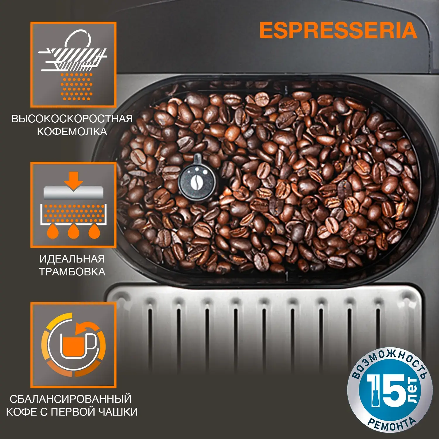 Мы рекомендуем пользоваться кофейными зернами высокого качества, чтобы продлить срок службы жерновов кофемолки.