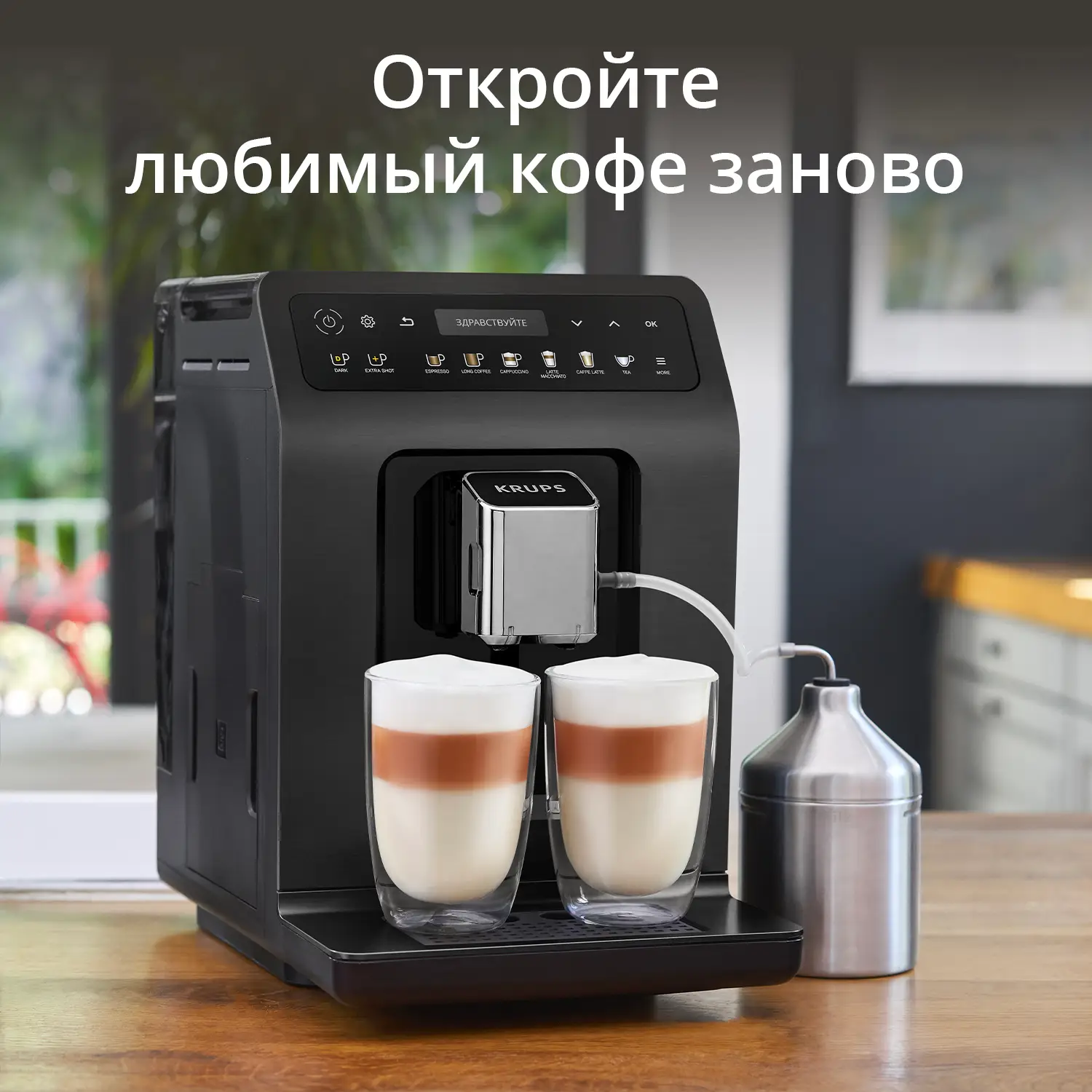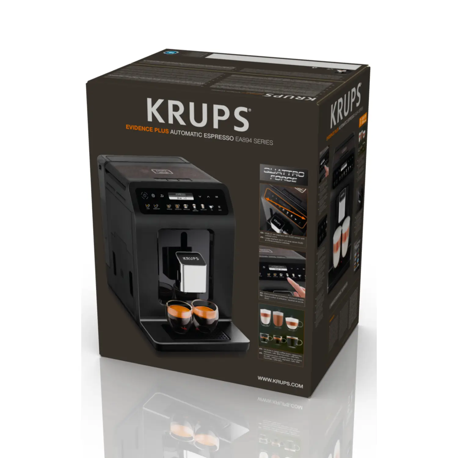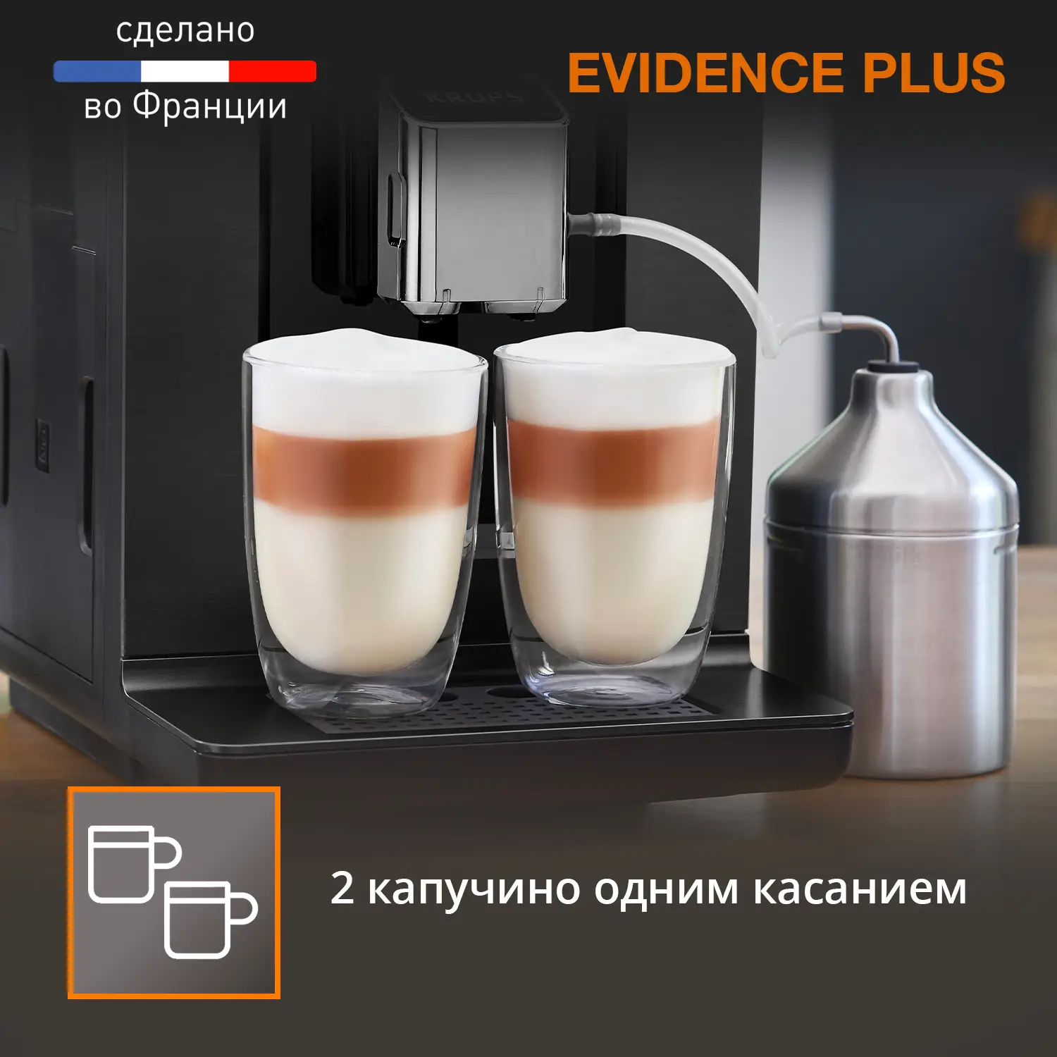 Кофемашина KRUPS EVIDENCE PLUS EA894810 в черном цвете — это современная кофемашина с автоматическим приготовлением капучино, оснащенная сенсорным управлением для максимально удобного использования. Мощность устройства составляет 1450 Вт, что обеспечивает быстрое приготовление напитков. Доступна ручная регулировка степени помола (3 режима), что позволяет подстраивать вкус кофе под индивидуальные предпочтения. Среди полезных функций: автоматическая очистка молочника, автоматические программы по уходу, возможность программирования любимых рецептов, система бысторого выброса кофе, система приготовления латте и капучино прямо из пакета с молоком в чашку. Производство — Франция.