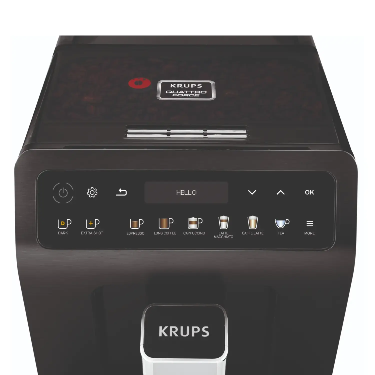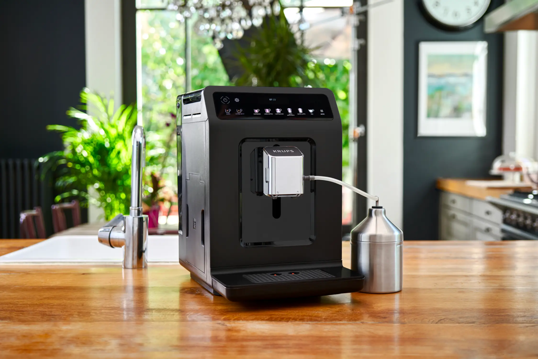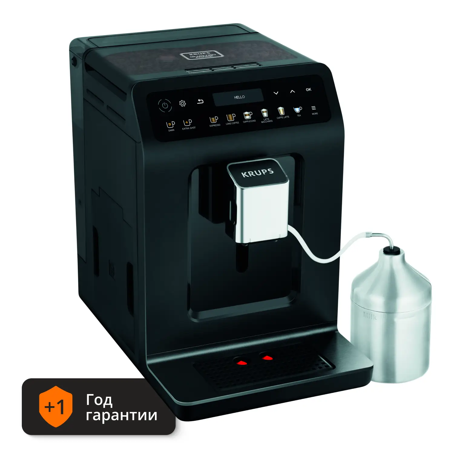 Кофемашина KRUPS EVIDENCE PLUS EA894810 в черном цвете — это современная кофемашина с автоматическим приготовлением капучино, оснащенная сенсорным управлением для максимально удобного использования. Мощность устройства составляет 1450 Вт, что обеспечивает быстрое приготовление напитков. Доступна ручная регулировка степени помола (3 режима), что позволяет подстраивать вкус кофе под индивидуальные предпочтения. Среди полезных функций: автоматическая очистка молочника, автоматические программы по уходу, возможность программирования любимых рецептов, система бысторого выброса кофе, система приготовления латте и капучино прямо из пакета с молоком в чашку. Производство — Франция.