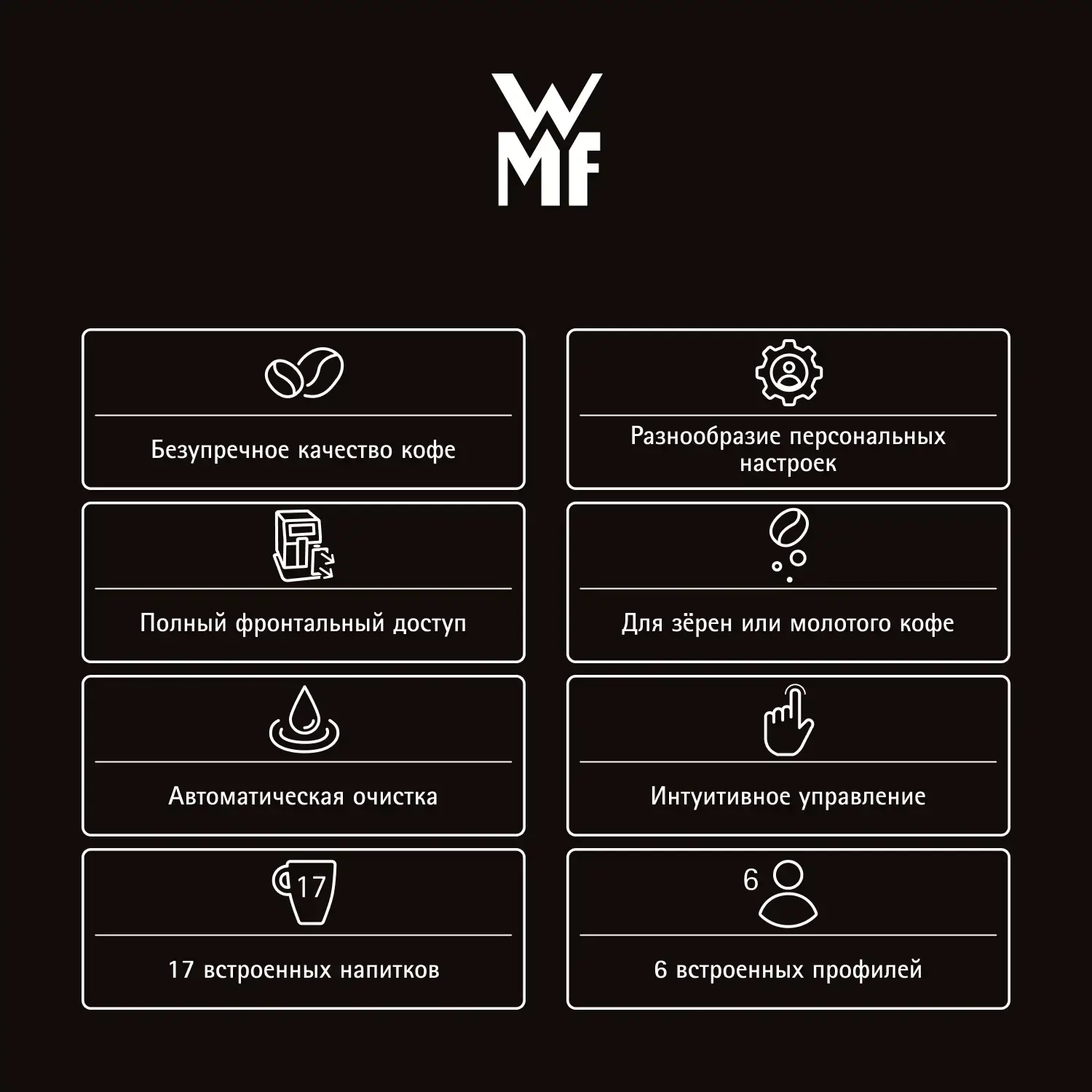 Кофемашина WMF Perfection 760 CP823A10 — это кофемашина в серебристом цвете, оснащенная мощностью 1550 Вт, что обеспечивает эффективную работу. Удобное сенсорное управление. Страна-производитель — Франция.